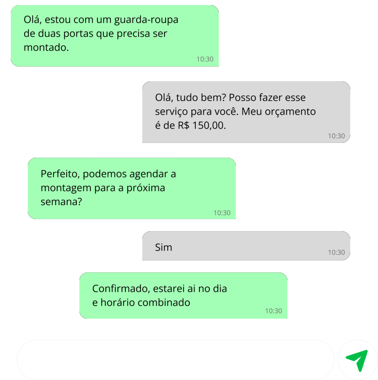 É muito mais fácil quando você pode dialogar. Combine horários, solicite ou envie orçamentos, o chat é livre!